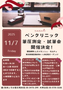 「ペンクリニック 筆圧測定 試筆会」を行います。